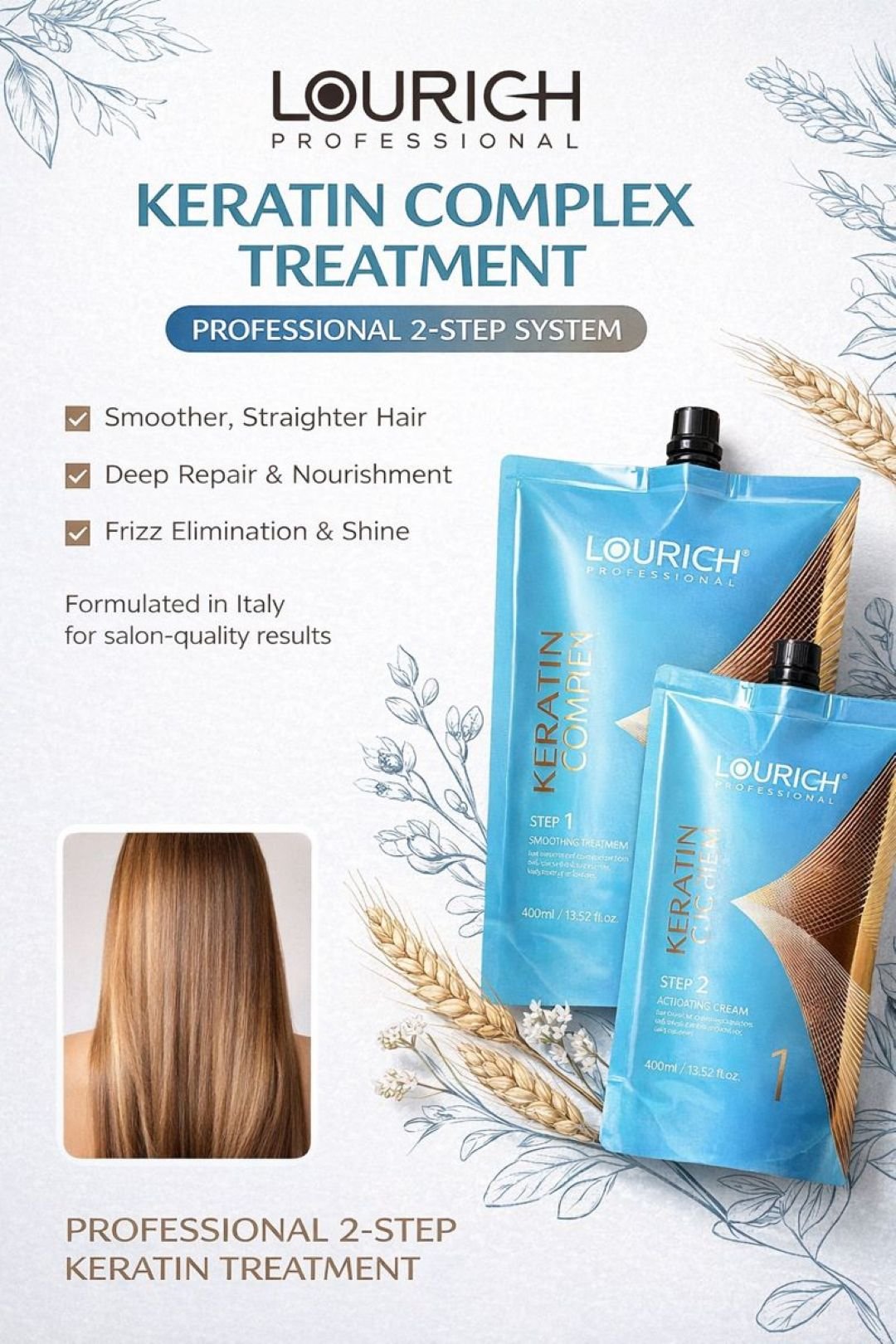 The Lourich Professional Keratin Complex Blue Rebonding Cream Set is an advanced hair straightening solution engineered for superior performance and professional results. This two-step system transforms frizzy, curly, and unmanageable hair into sleek, smooth, and perfectly straight styles.